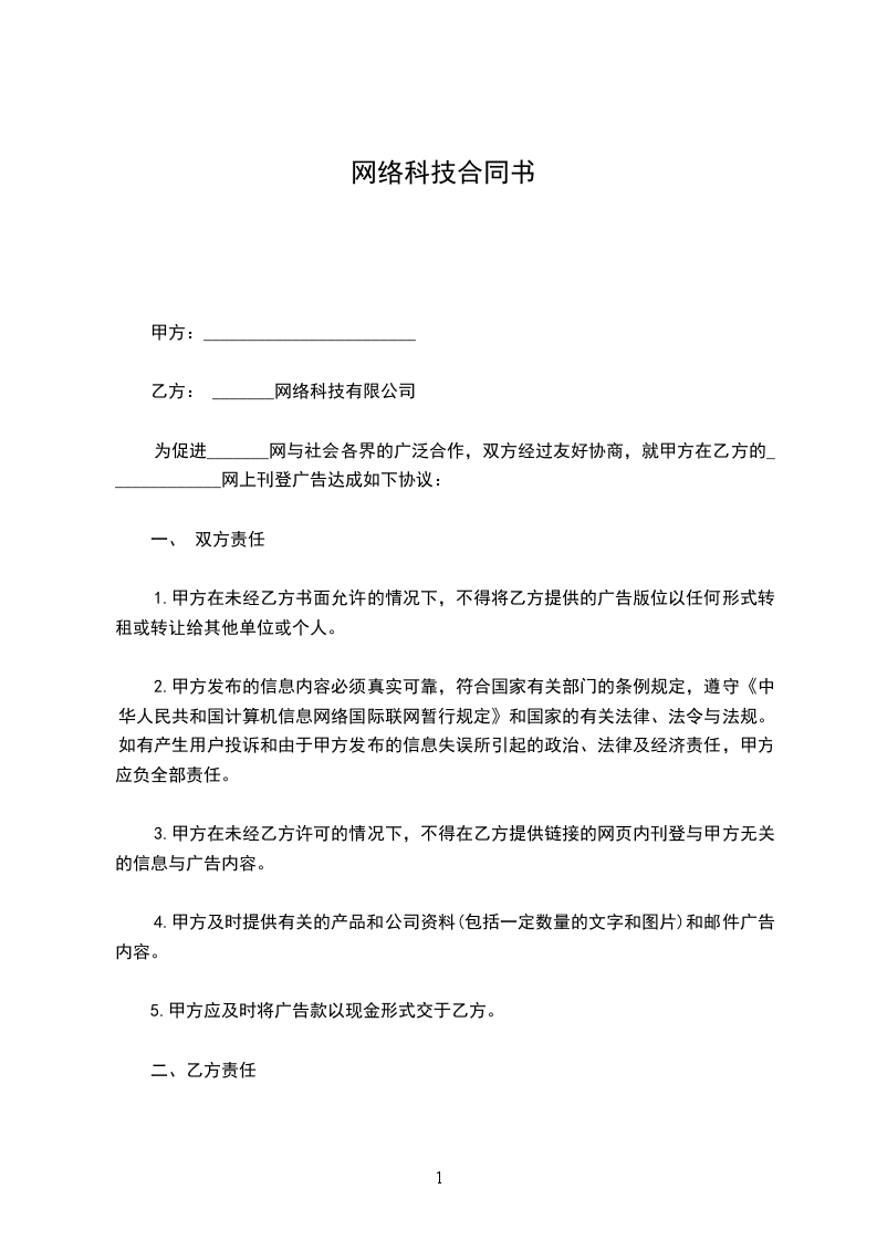 甲方: 网络科技有限公司