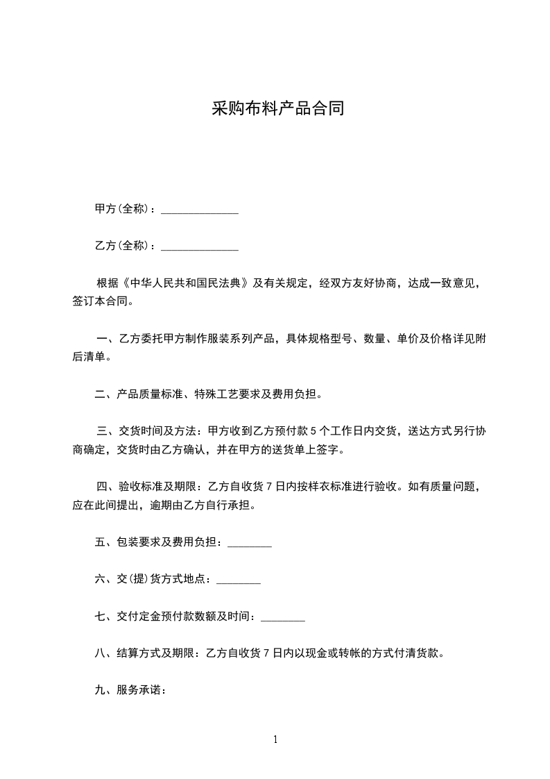 八、结算方式及期限:乙方自收货7日内以现金或转帐的方式付清货款。