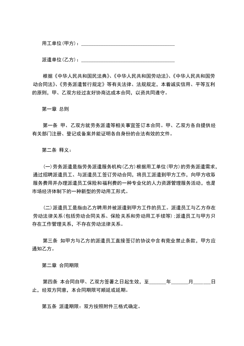 根据《中华人民共和国民法典》、《中华人民共和国劳动法》、《中华人民共和国劳动合同法》、《劳务派遣暂行规定》等有关法律、法规规定,本着诚实信用、平等互利的原则,甲、乙双方经过友好协商达成本合同,以资共同遵守。