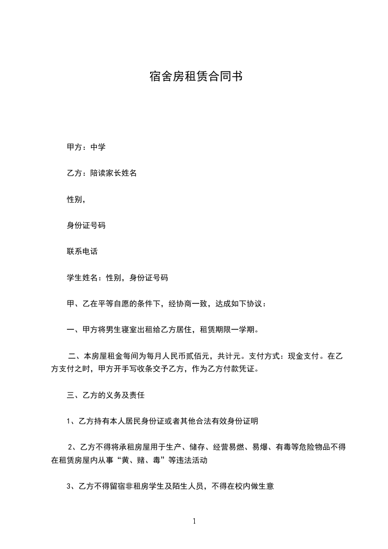 十、乙方在租凭期间必须接受当地居委会及相关部门的管理。