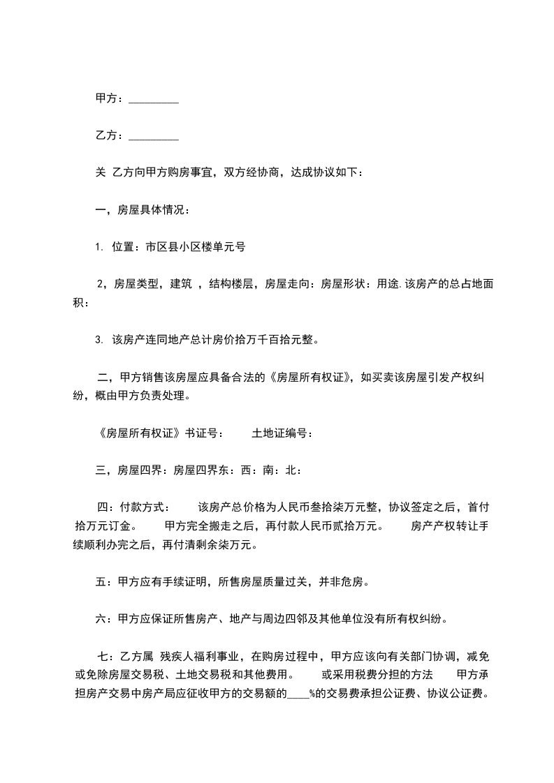 甲乙双方经过有好协商,就房屋买卖一事,在平等、自愿、诚实信用的前提下,达成如下协议: