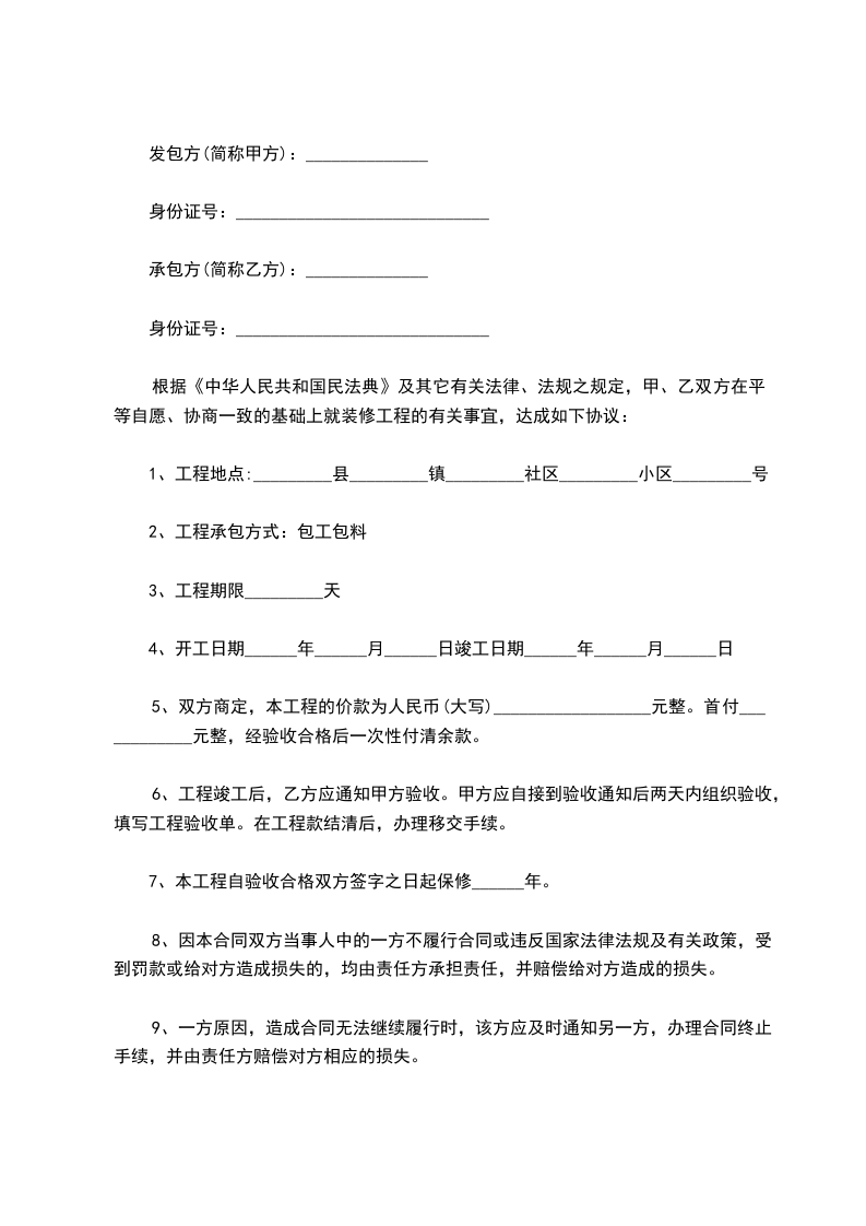根据《中华人民共和国民法典》及其它有关法律、法规之规定,甲、乙双方在平等自愿、协商一致的基础上就装修工程的有关事宜,达成如下协议:
