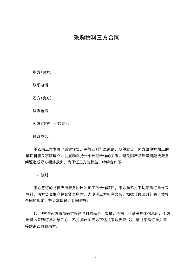 三、物料总价:人民币:___________¥元 ,大写:___________