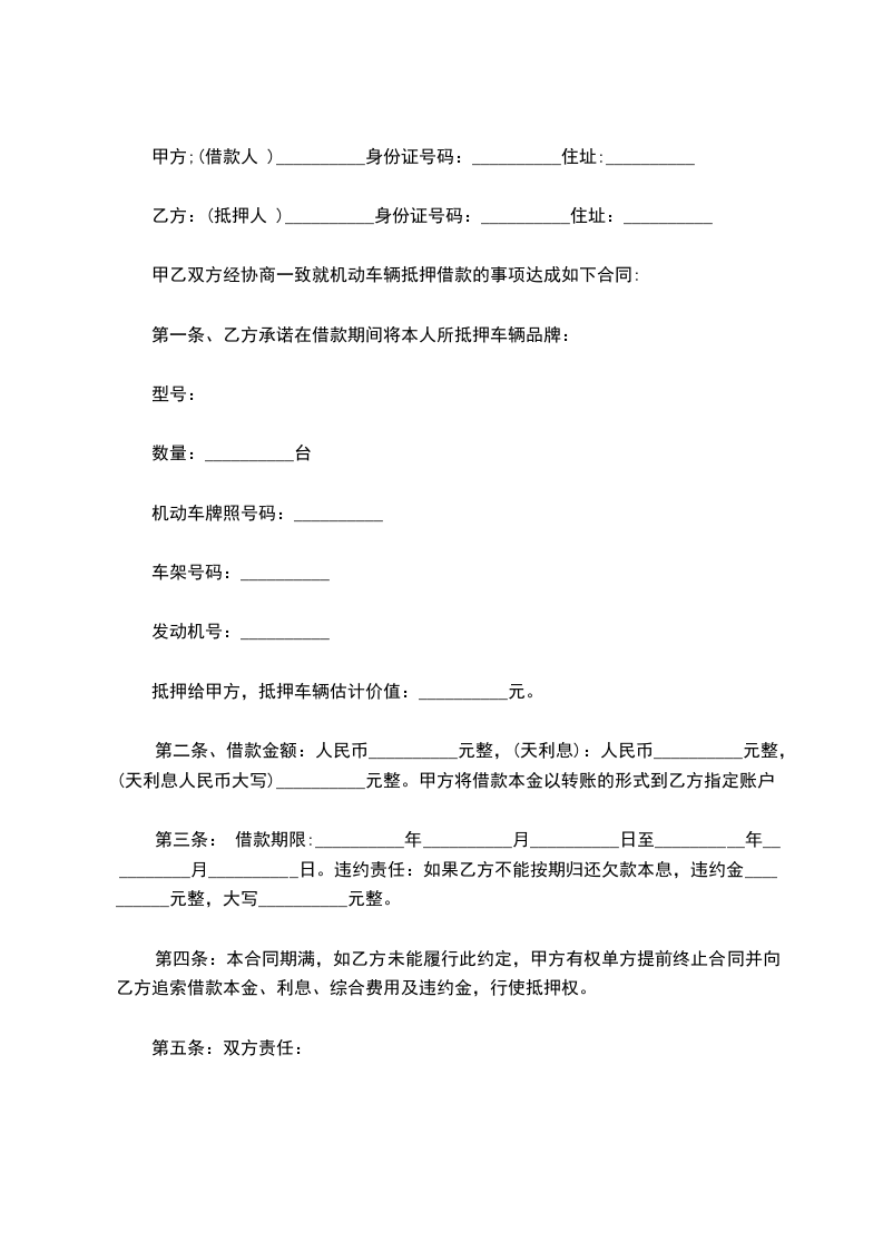 甲乙双方经协商一致就机动车辆抵押借款的事项达成如下合同: