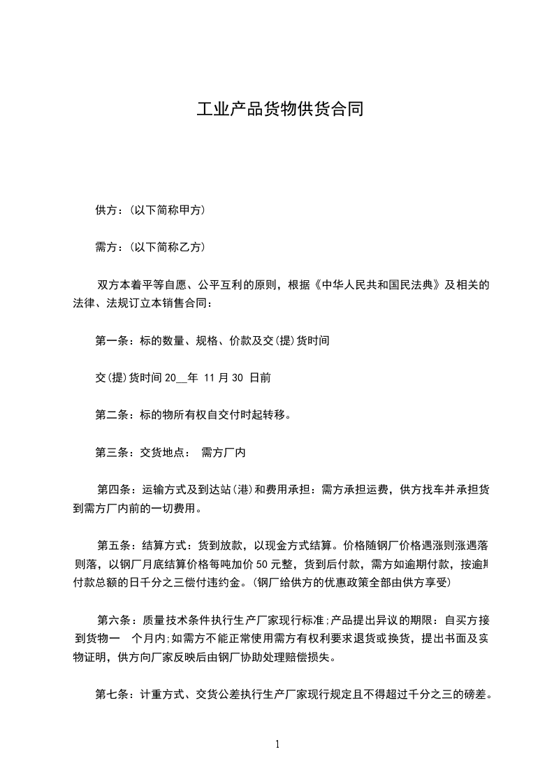 一、购销数量:供方从_________年_________月到_________年_________月为需方提供牌号为_________的______,每月_________吨。