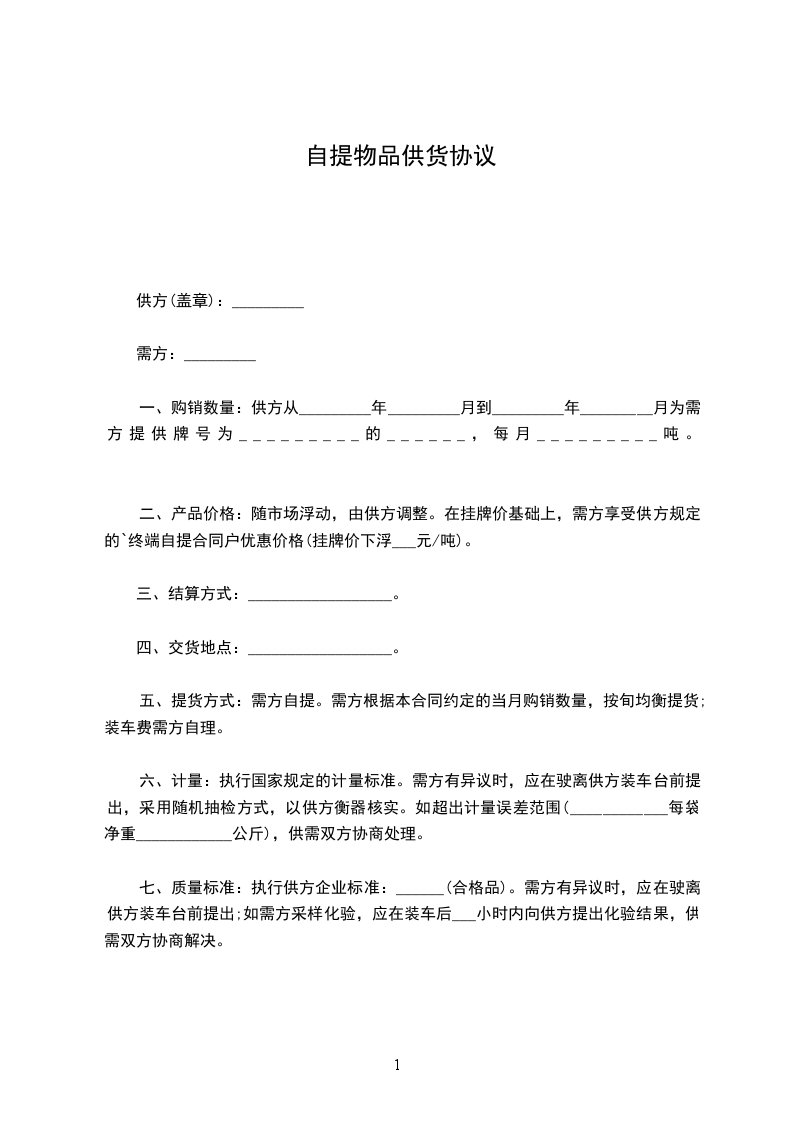二、产品价格:随市场浮动,由供方调整。在挂牌价基础上,需方享受供方规定的`终端自提合同户优惠价格(挂牌价下浮___元/吨)。