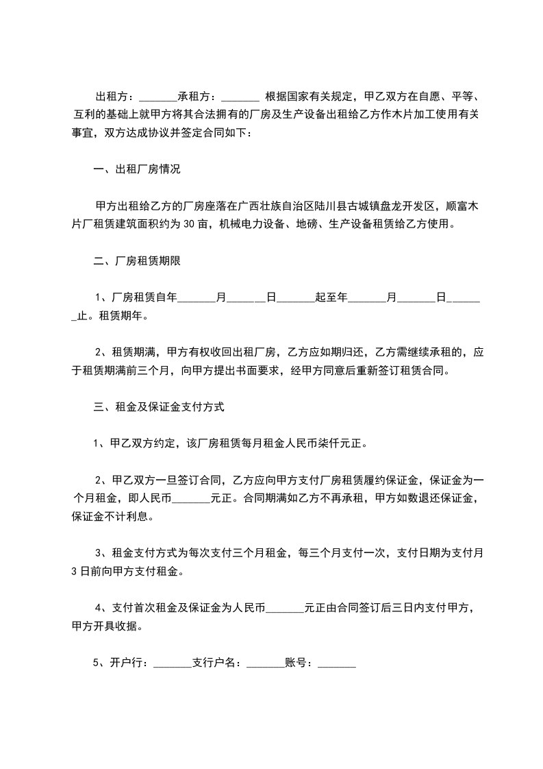 1、甲方按现状设施、场地交给乙方和原车间安装照明电及三相电表一并交给乙方使用。