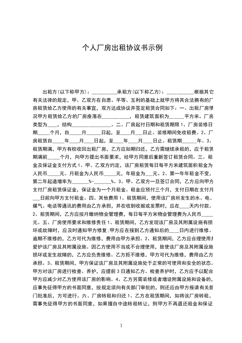l、在履行合同期间内,单方不得以任何理由和任何方式索回车间及场地或转租他人,不得提高或压低租金和管理费,否则作单方违约处理,违约方必须按法律规定承担由此造成的全部经济责任,如数赔偿给守约方的所有损失。