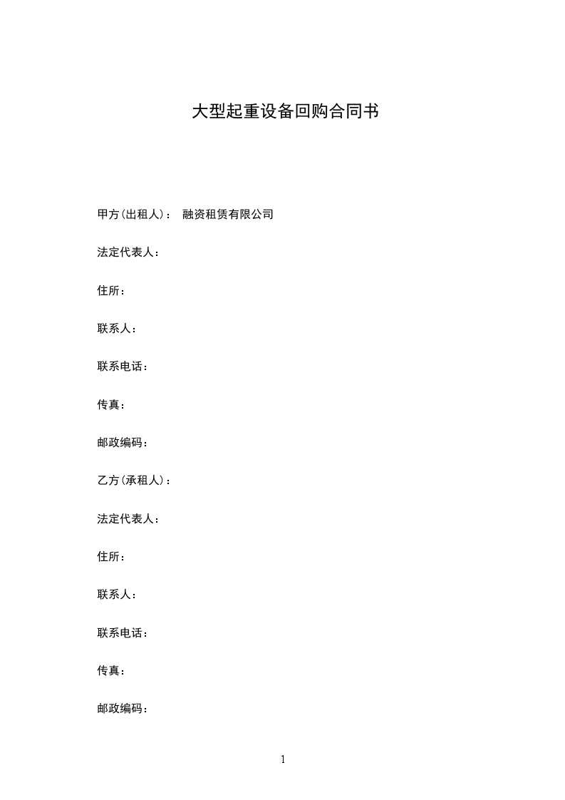 甲方(出租人): 融资租赁有限公司