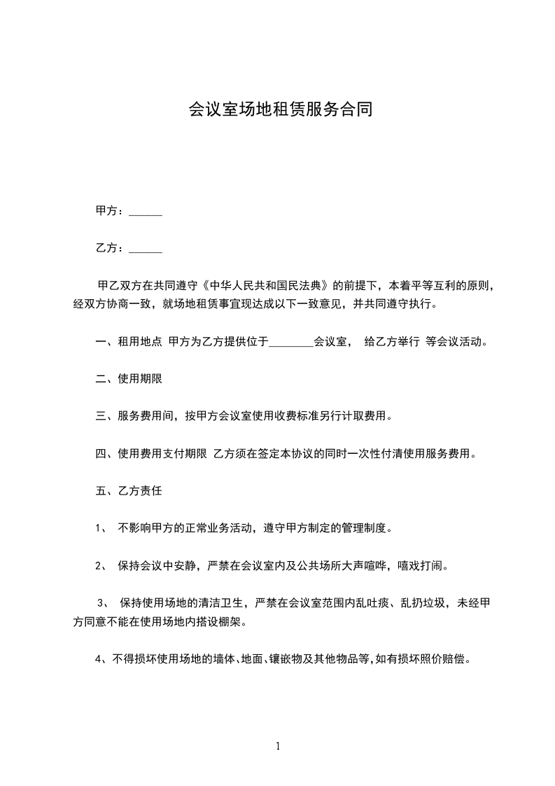 5、为乙方提供一般性会场清洁服务。