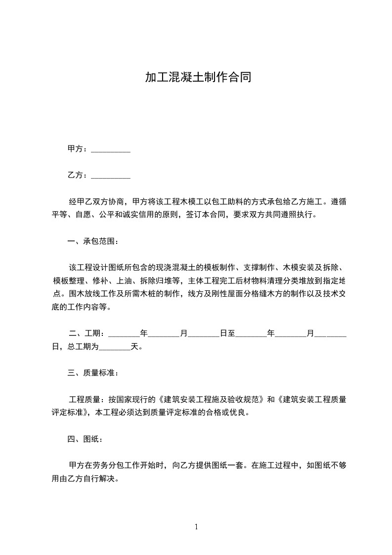 经甲乙双方协商,甲方将该工程木模工以包工助料的方式承包给乙方施工。遵循平等、自愿、公平和诚实信用的原则,签订本合同,要求双方共同遵照执行。