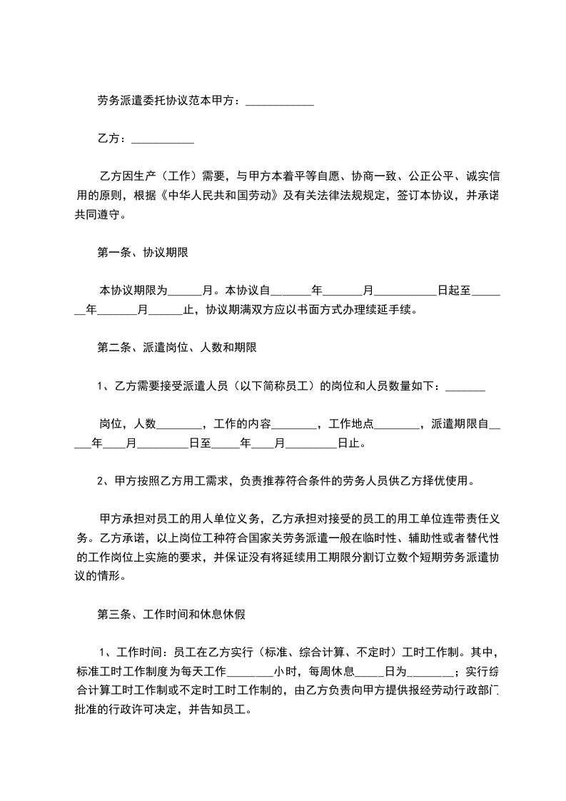 第六条 根据用工单位的岗位(工种)作业特点,乙方的工作区域或工作地点为____________________