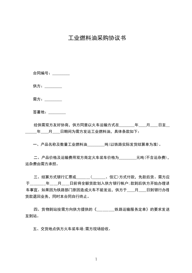 一、产品名称及数量工业燃料油_________吨(以铁路实际发货结算单为准)。