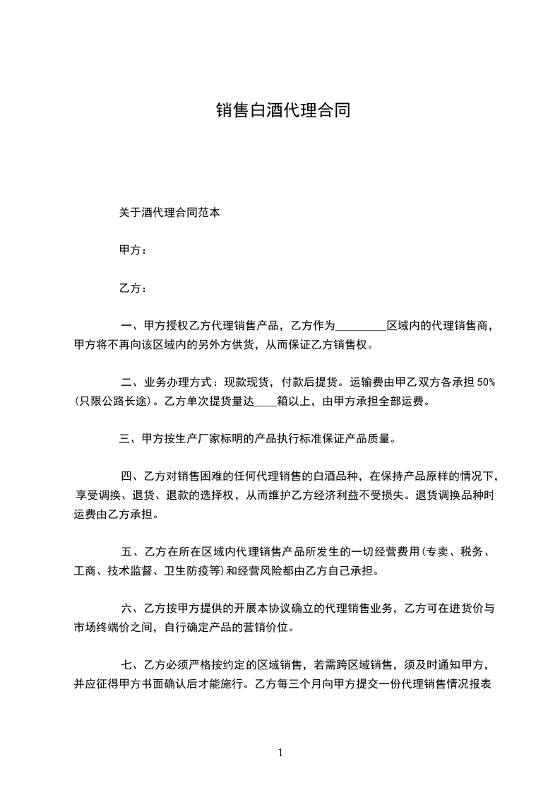 五、乙方在所在区域内经销_________白酒发生的一切经营费用(专卖、税务、工商、技术监督、卫生防疫等)和经营风险都由乙方自己承担。