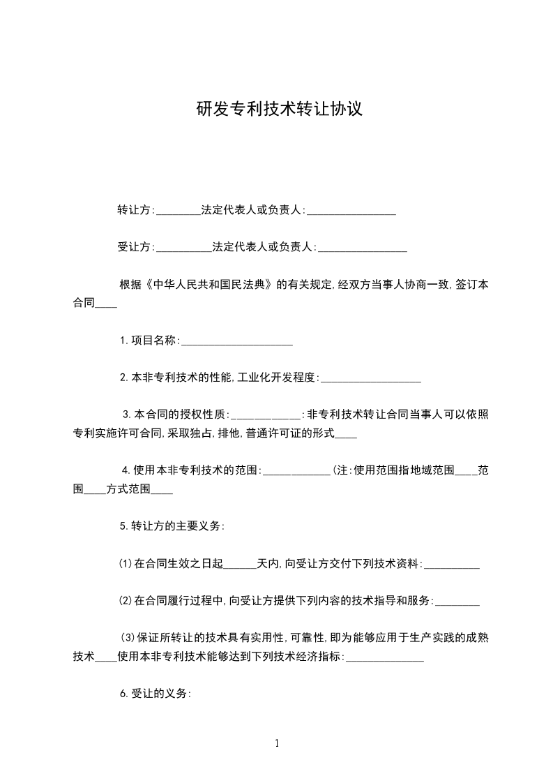 4.使用本非专利技术的范围:____________(注:使用范围指地域范围____范围____方式范围____