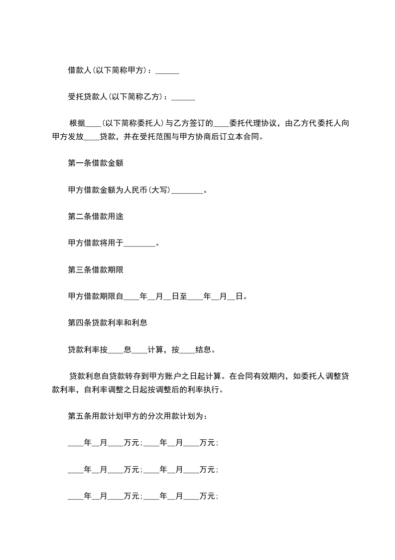 第一、由贷款方按下更分期借款计划按时、按额向借款方提供贷款总额为_____元。借款还款计划如下表。