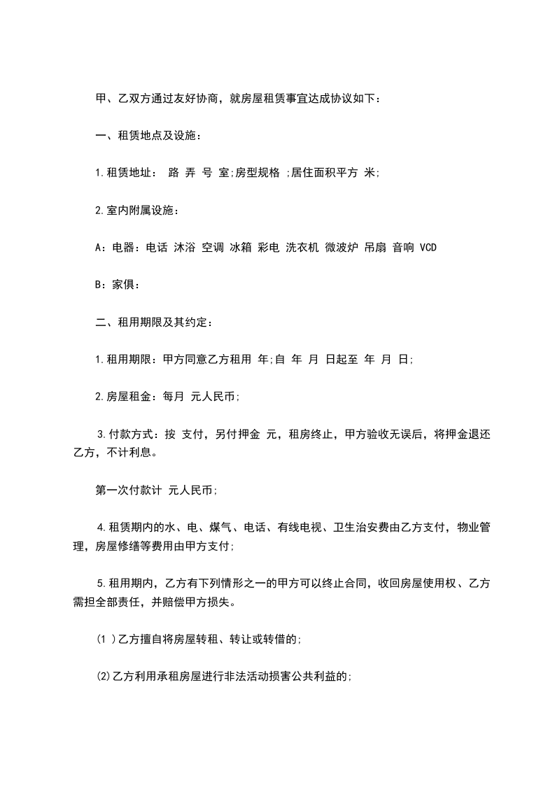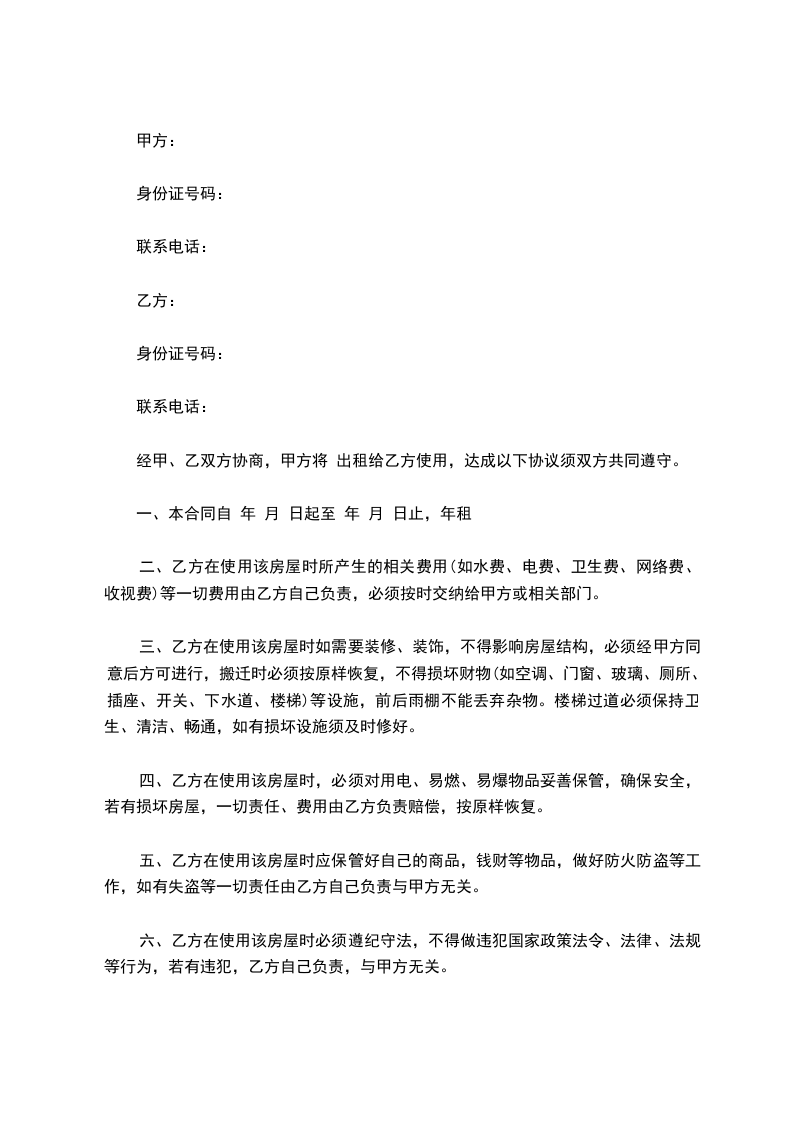1.房屋租赁期间,乙方应自觉遵守各项规章制度,爱护公物和设施。