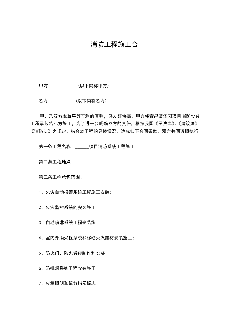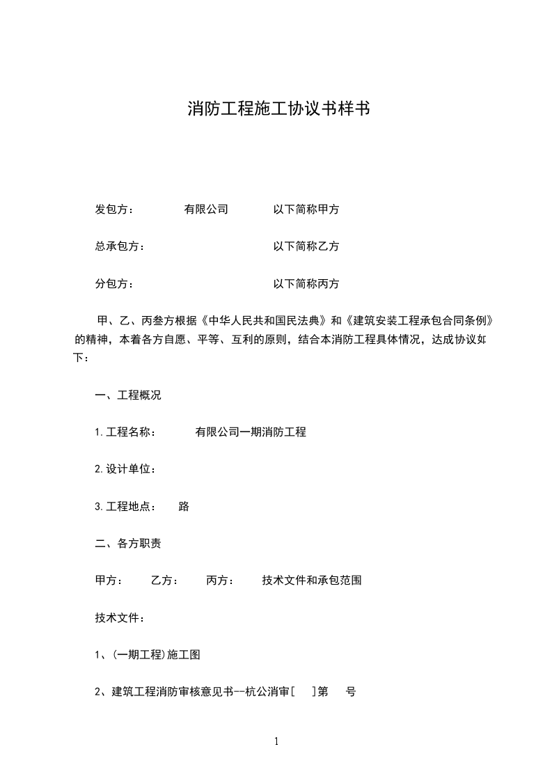 甲、乙、丙叁方根据《中华人民共和国民法典》和《建筑安装工程承包合同条例》的精神,本着各方自愿、平等、互利的原则,结合本消防工程具体情况,达成协议如下: