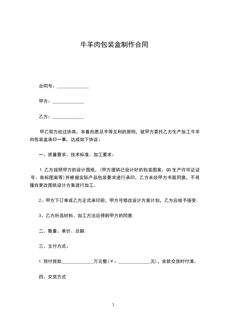 甲乙双方经过协商,本着自愿及平等互利的原则,就甲方委托乙方生产加工牛羊肉包装盒承印一事,达成如下协议: