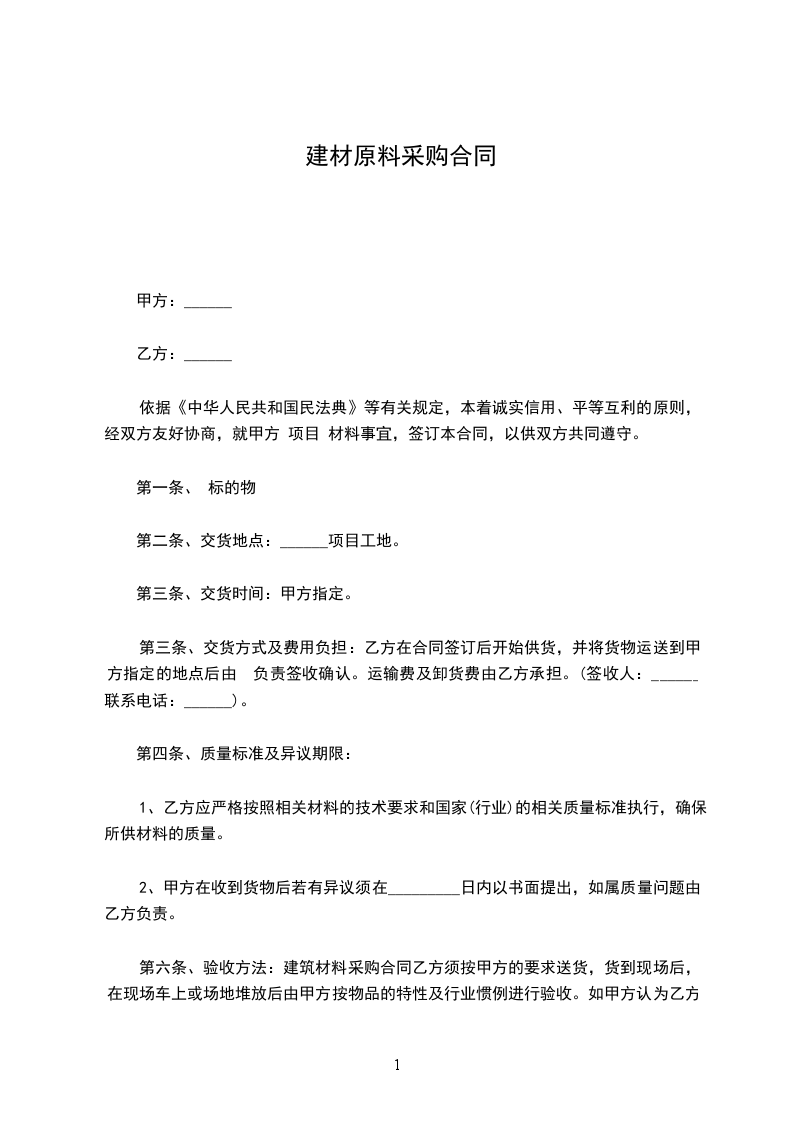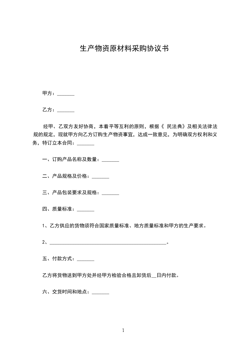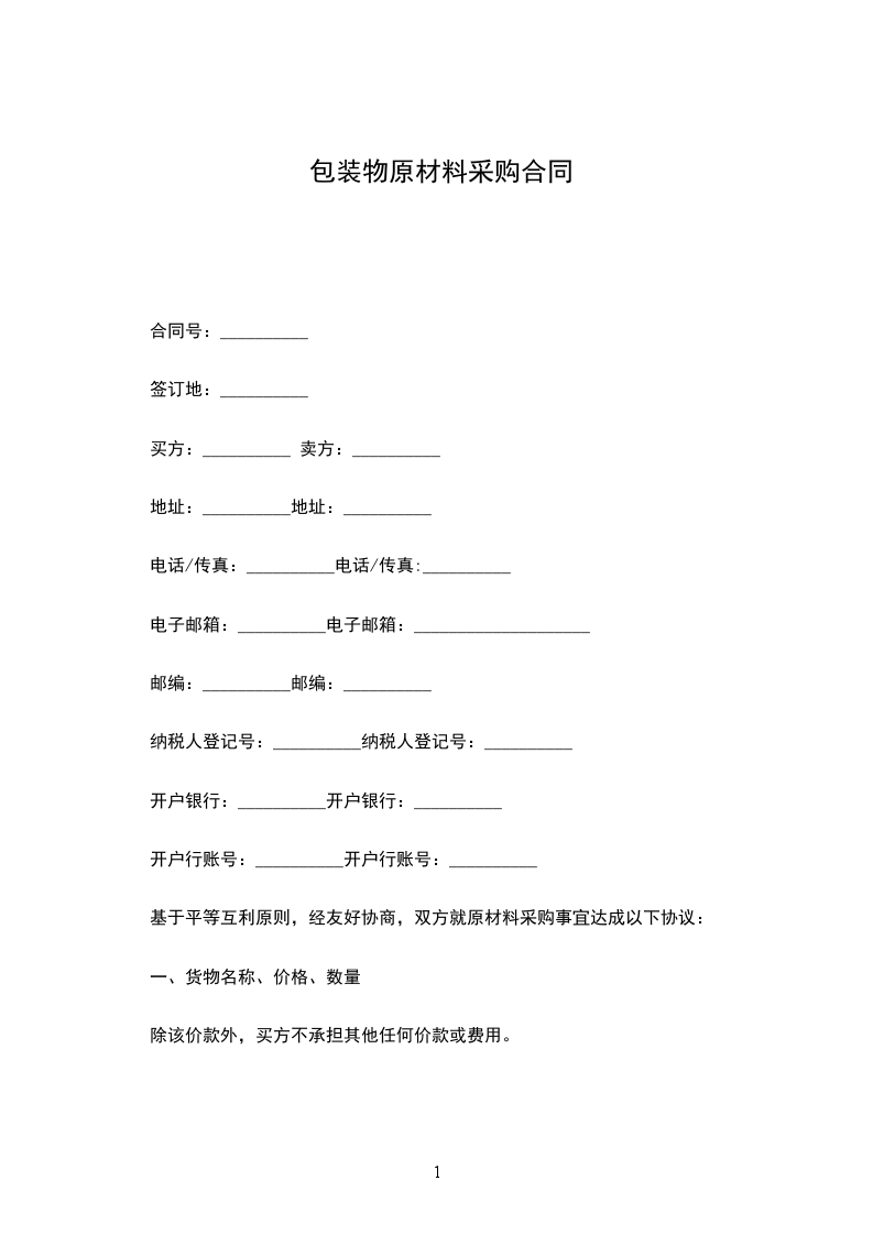 基于平等互利原则,经友好协商,双方就原材料采购事宜达成以下协议: