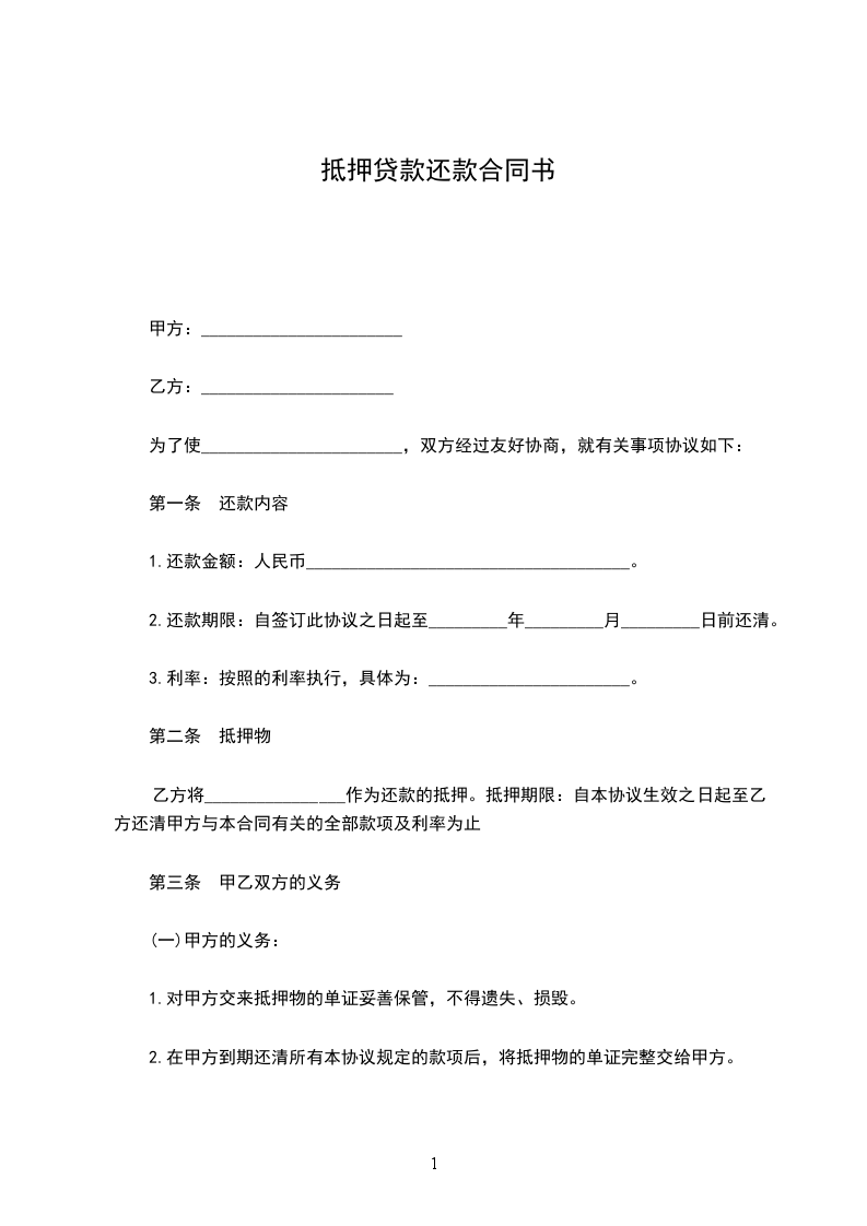 乙方将________________作为还款的抵押。抵押期限:自本协议生效之日起至乙方还清甲方与本合同有关的全部款项及利率为止