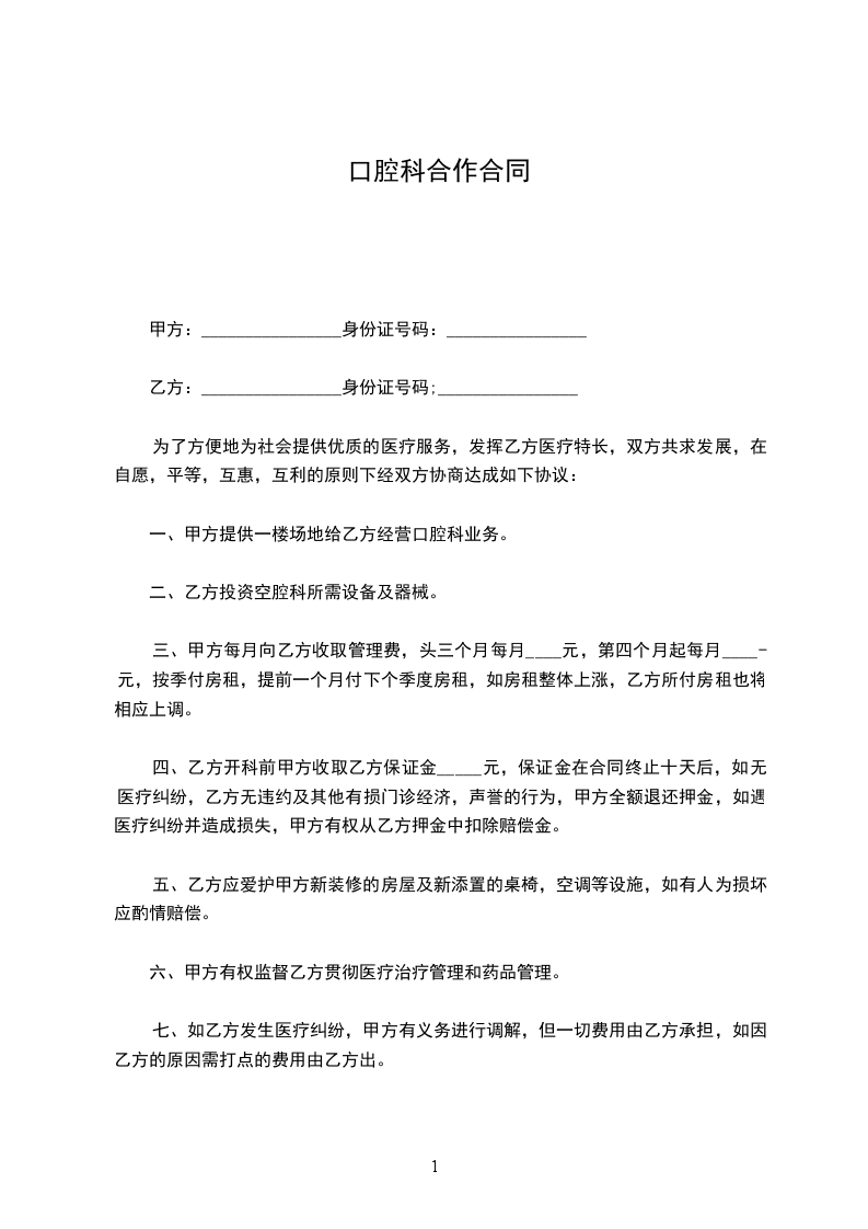 一、甲方提供一楼场地给乙方经营口腔科业务。