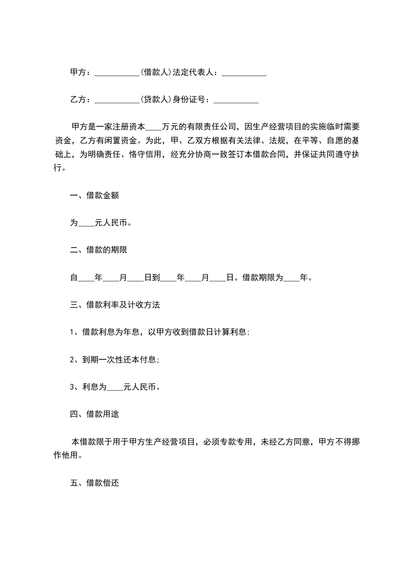 2、如乙方临时需要收回借款,应提前十五天向甲方提出还款申请,借款利息按实际借款天数计算利息。