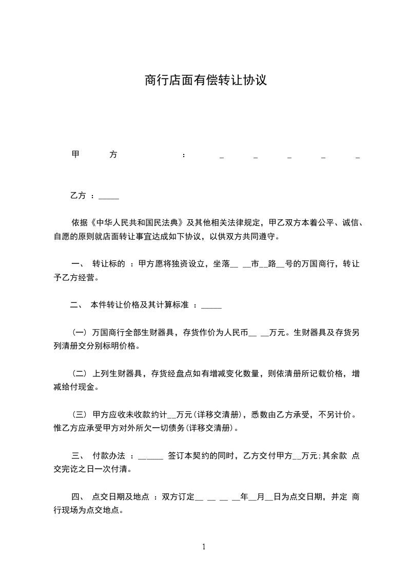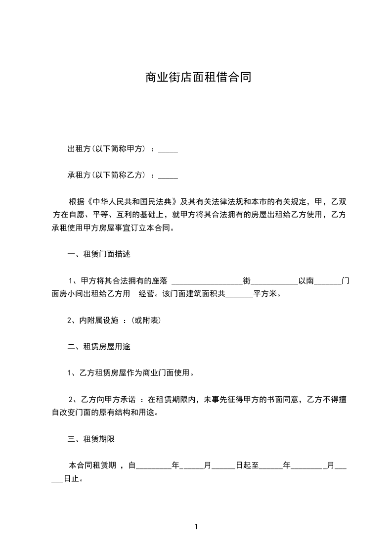 一、甲方将座落于副食大楼一楼一间面积为_____平方米的临街门面租赁给乙方,作为服装店使用。