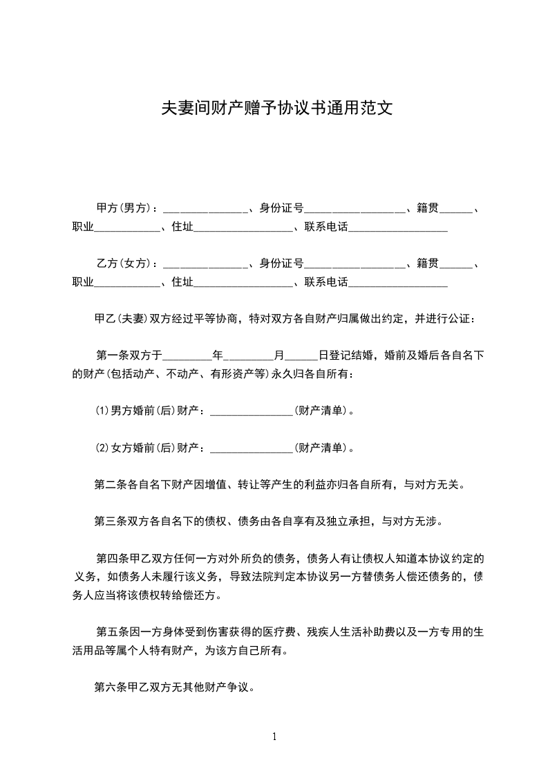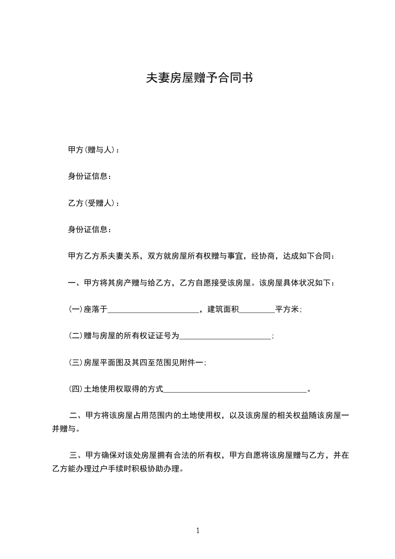 一、甲方将其所有的(标的物)赠送给乙方,其所有权证明为:________(写明证明甲方拥有所有权的证据名称,如赠与房屋,就应有房产所有权证,赠与微机应有购买该微机的发票等)
