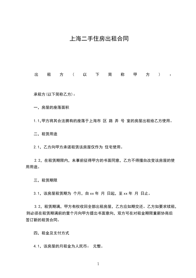 1.1,甲方将其合法拥有的座落于上海市 区 路 弄 号 室的房屋出租给乙方使用。