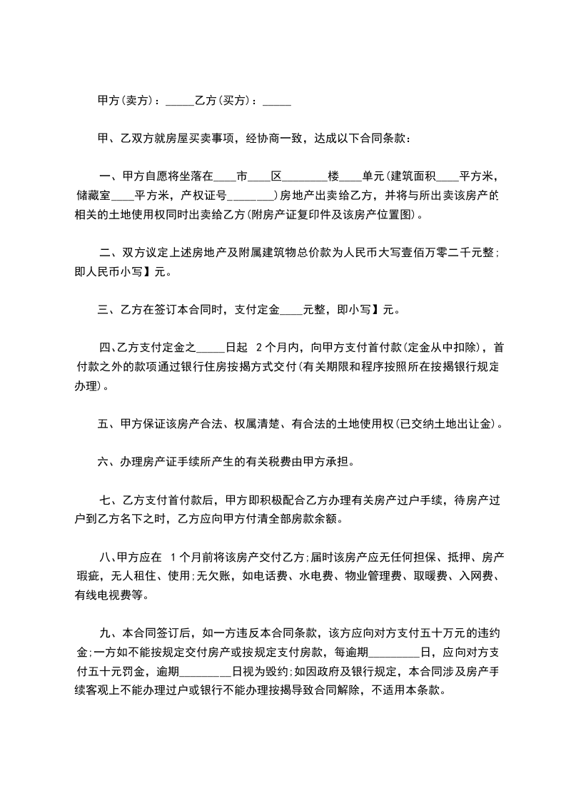 1.甲方所拥有的坐落于__________________房屋,建筑面积__________________平方米,其现用途为自住。