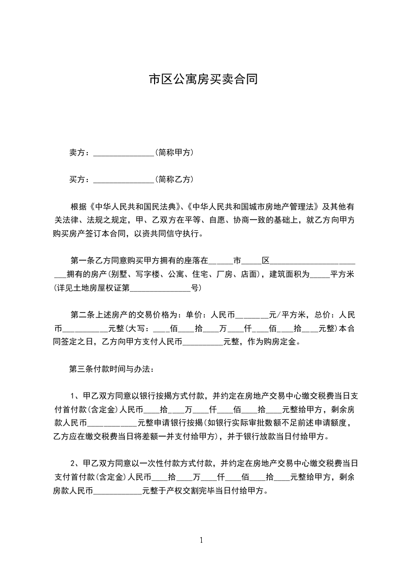 根据《中华人民共和国民法典》、《中华人民共和国城市房地产管理法》及其它相关法律、法规之规定,买卖双方在平等、自愿、协商一致的基础上就房屋买卖达成如下协议: