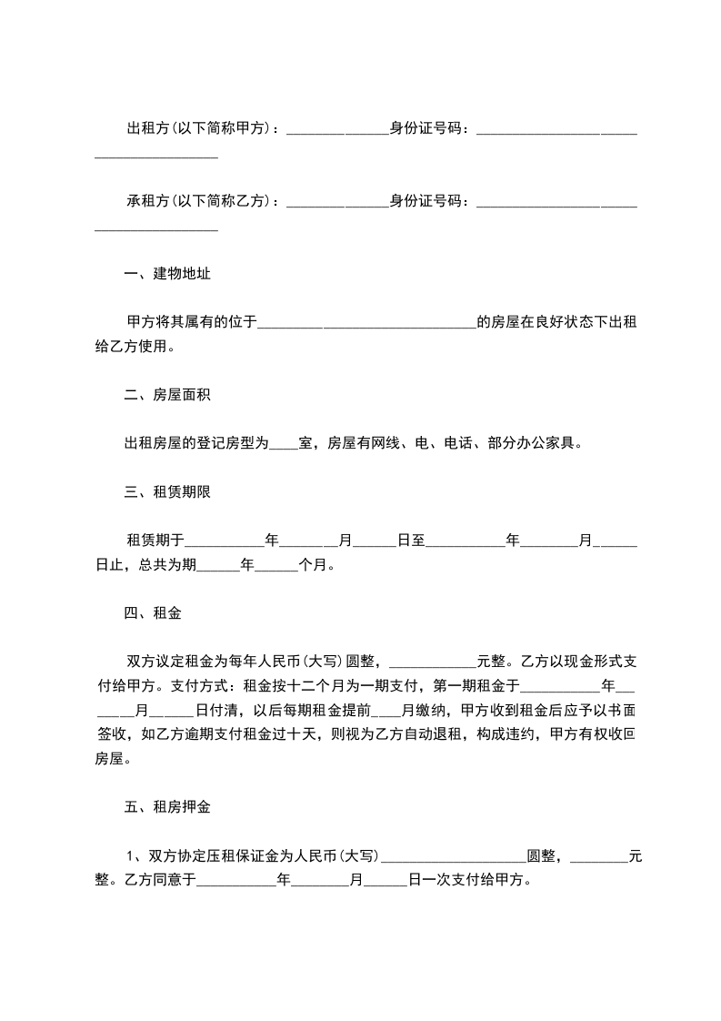 二、租赁期限:租期为年。从 年 月 日至 年 月 日止。