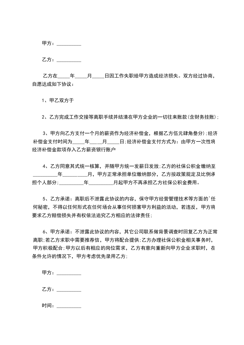 乙方在_____年_____月_____日因工作失职给甲方造成经济损失。双方经过协商,自愿达成如下协议: