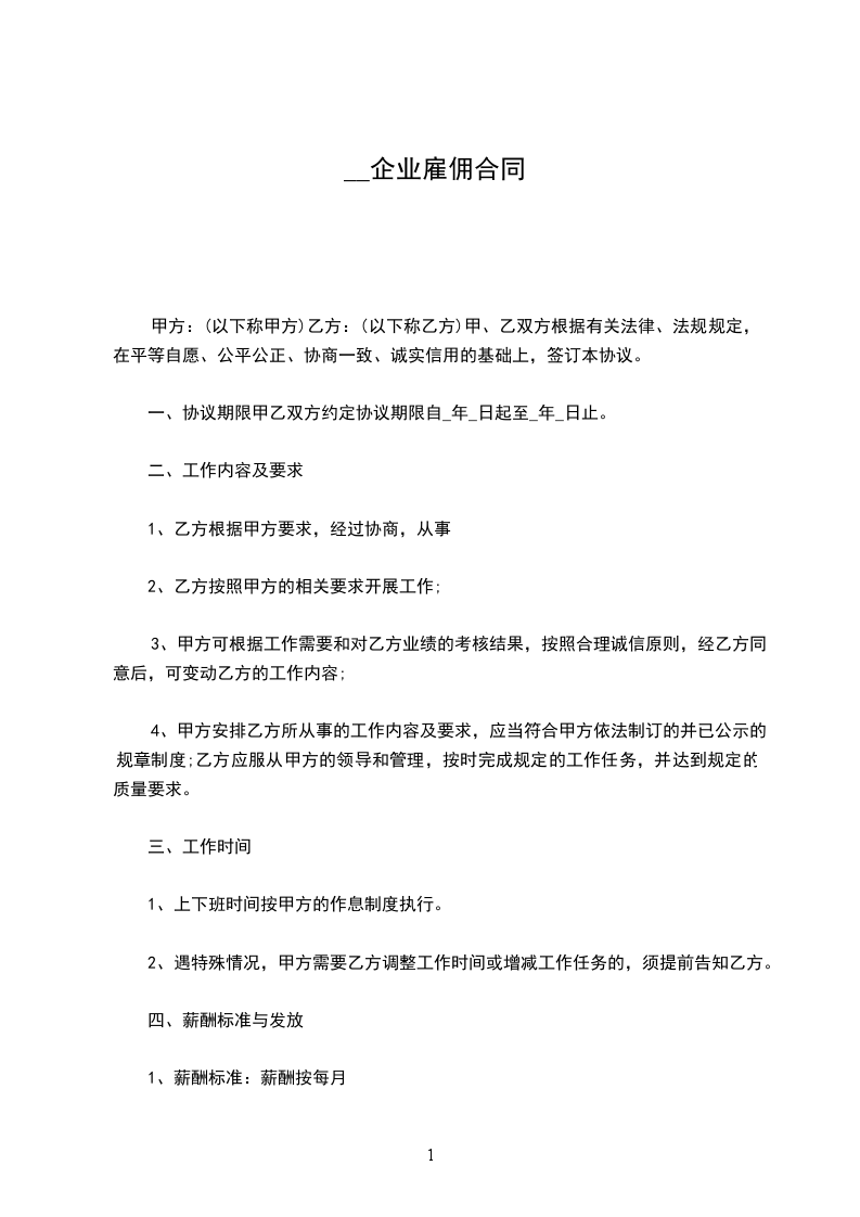 一、合同有效期:自________年____月____日至________年____月日止,合同期满雇佣关系自然终止。雇佣合同期满前一个月,经双方协商同意,可以续订雇佣合同。