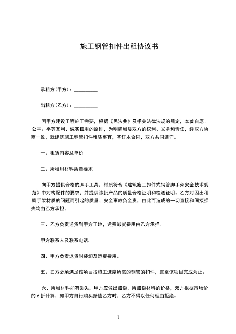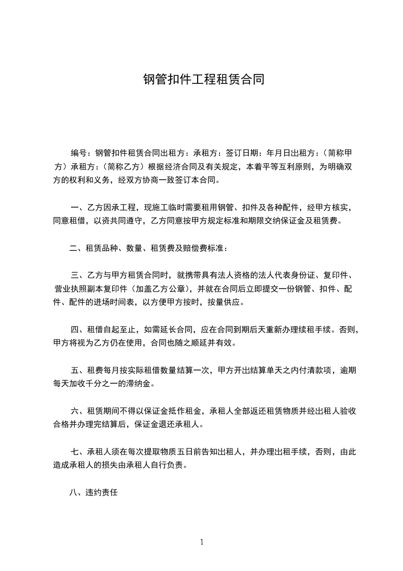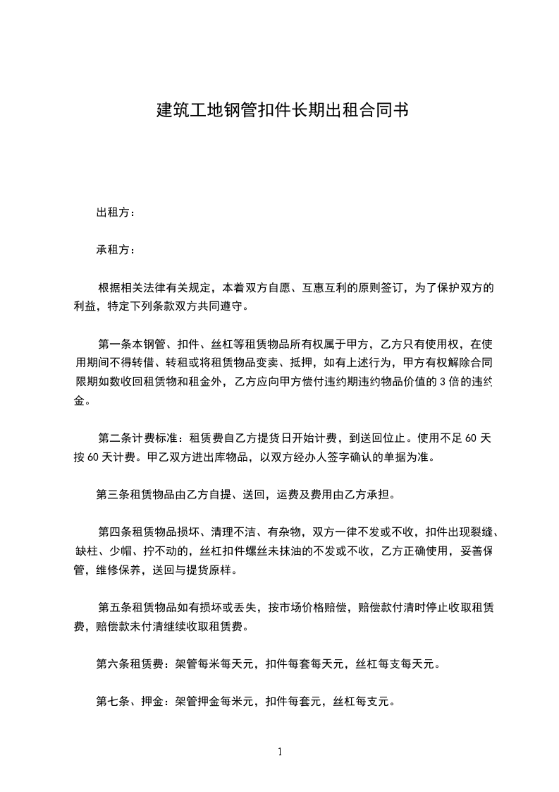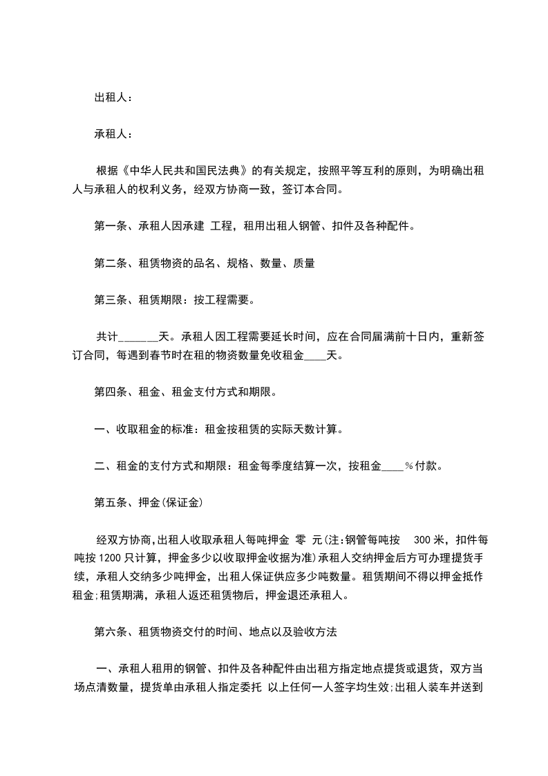 第七条、押金:架管押金每米元,扣件每套元,丝杠每支元。