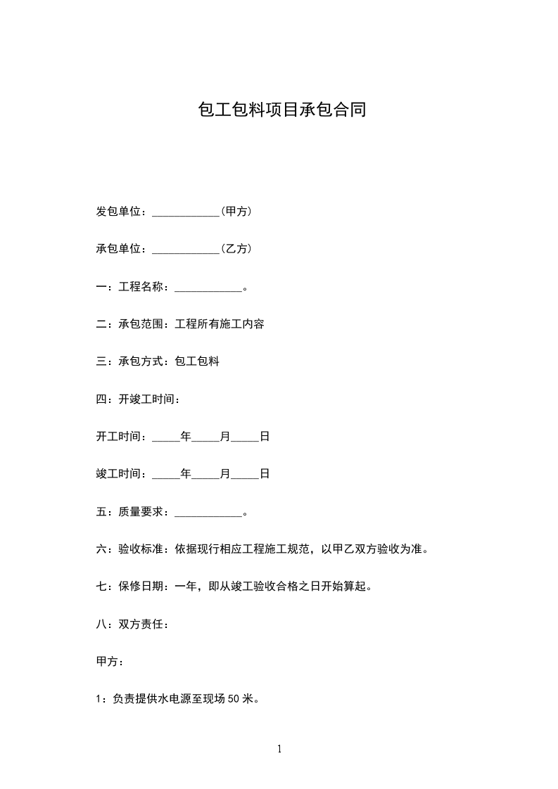 2、乙方承包范围内的项目实行包人工、包工期、包质量、包安全、包保修等全部内容。