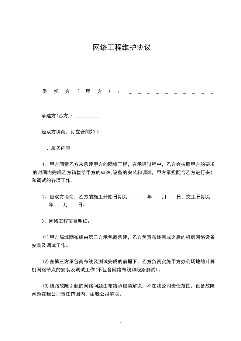 1、甲方同意乙方来承建甲方的网络工程,在承建过程中,乙方会按照甲方的要求的时间内完成乙方销售给甲方的'设备的安装和调试,甲方承担配合乙方进行安装和调试的各项工作。