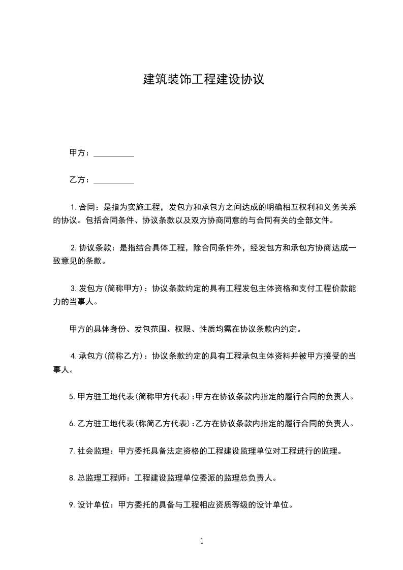 1.合同:是指为实施工程,发包方和承包方之间达成的明确相互权利和义务关系的协议。包括合同条件、协议条款以及双方协商同意的与合同有关的全部文件。