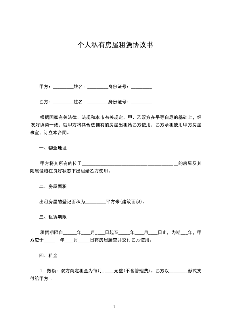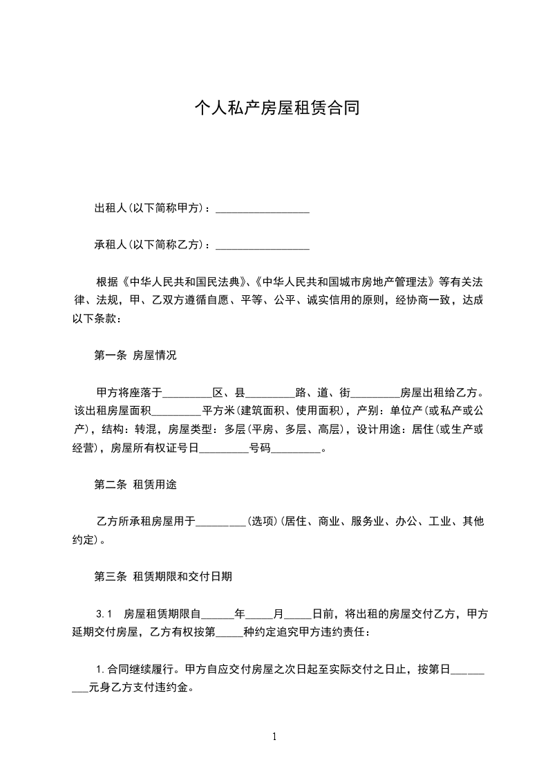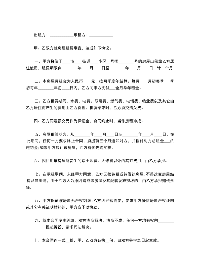 甲方将座落于_________区、县_________路、道、街_________房屋出租给乙方。该出租房屋面积_________平方米(建筑面积、使用面积),产别:单位产(或私产或公产),结构:转混,房屋类型:多层(平房、多层、高层),设计用途:居住(或生产或经营),房屋所有权证号日_________号码_________。
