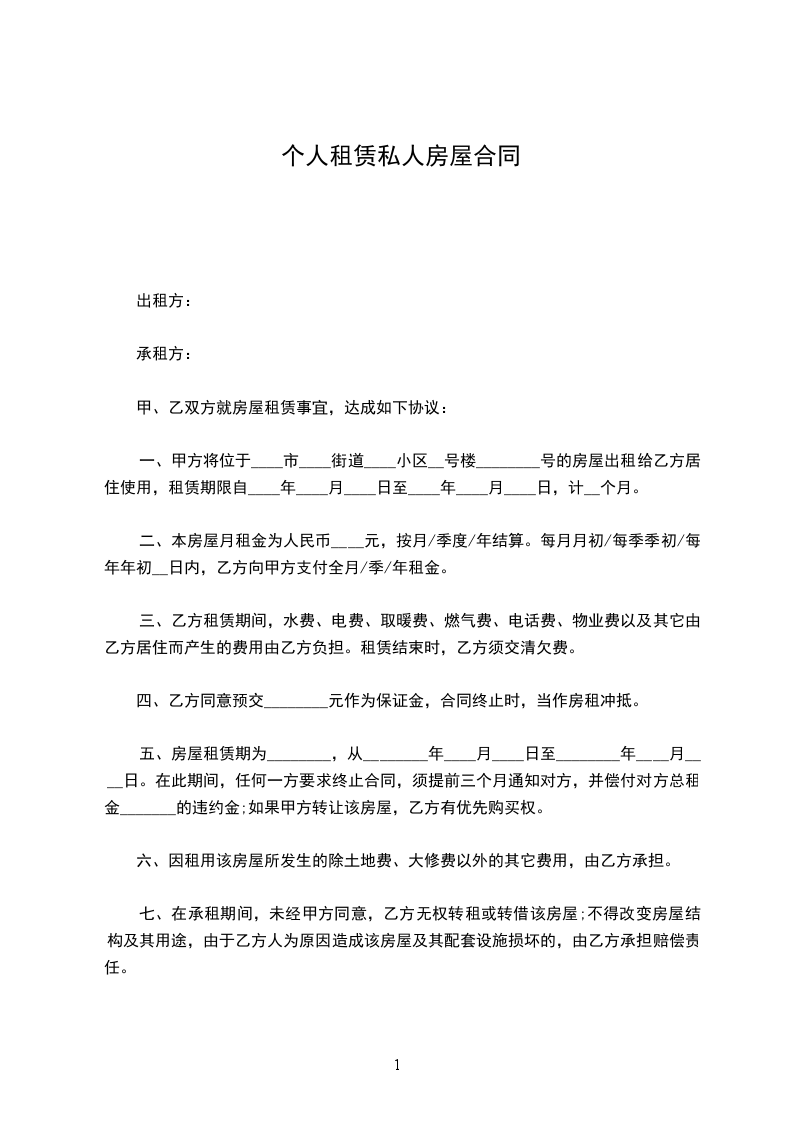 出租人(以下简称甲方):_________________