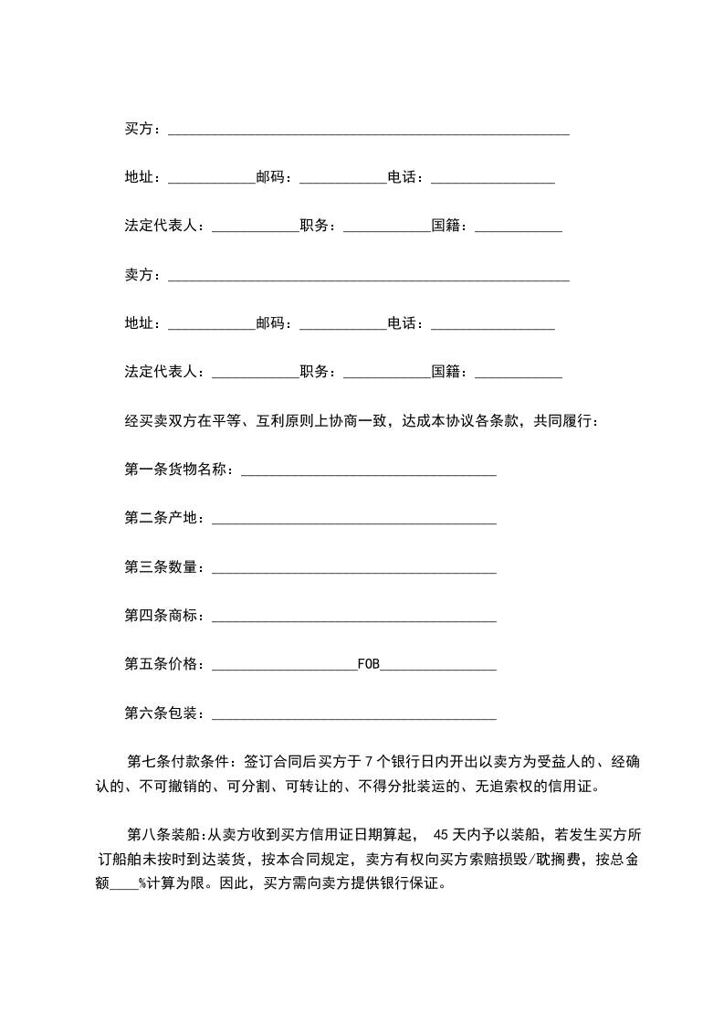 甲方应按乙方指定时间,将_________货物于_________天内集中于_________港,货物集齐后,乙方应在_________天内派船装运。