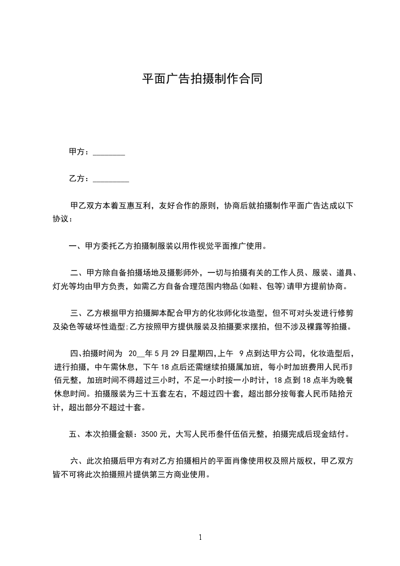 在甲乙双方正式签定合同之日起___________个工作日内,乙方完成制作后交付甲方审片。