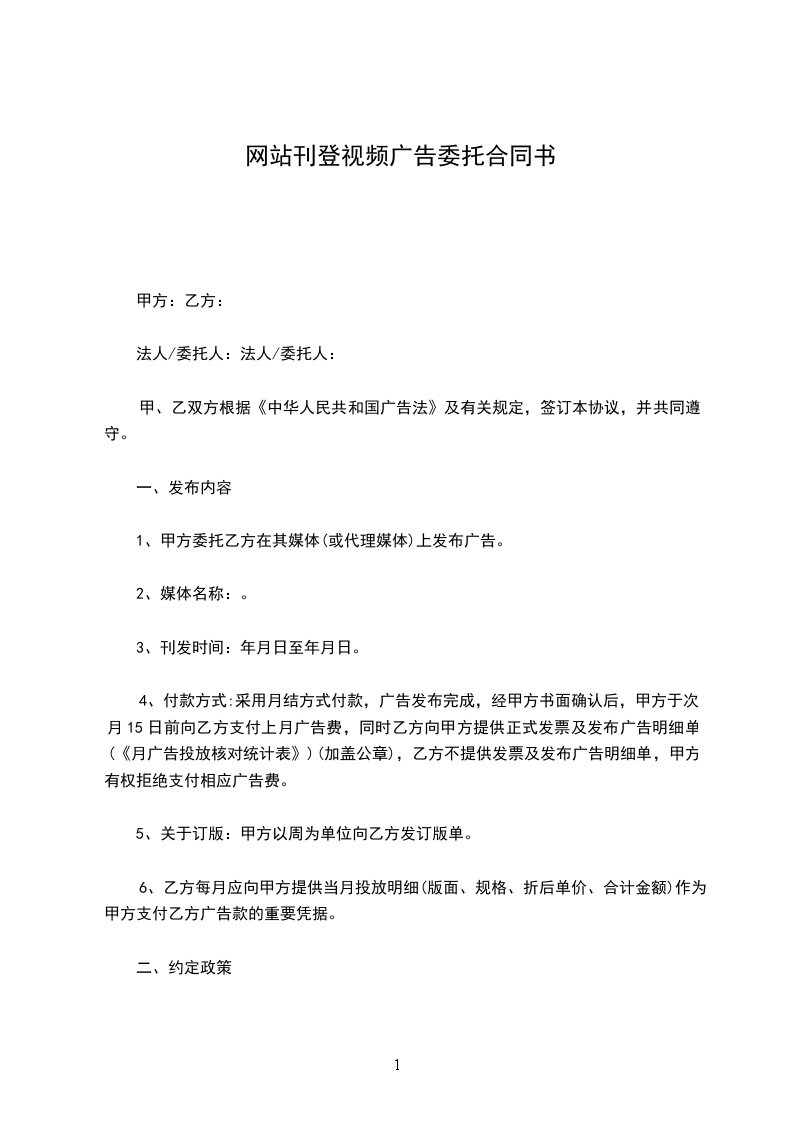 1、甲方委托乙方在其媒体(或代理媒体)上发布广告。