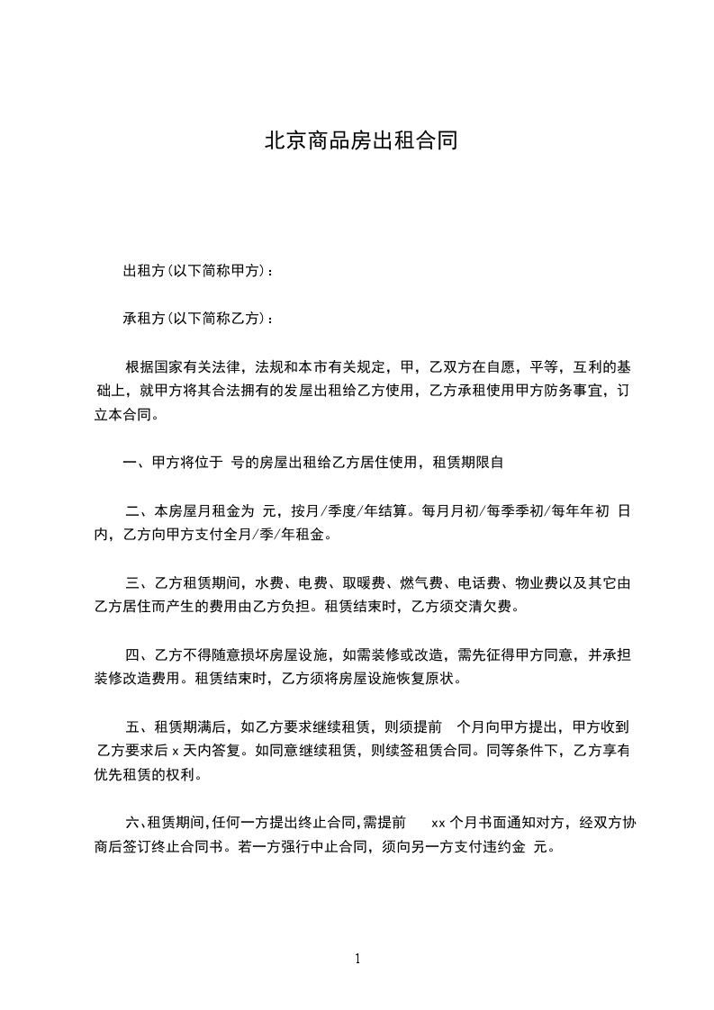 五、合同内的空格部分可由租赁双方根据实际情况约定填写。