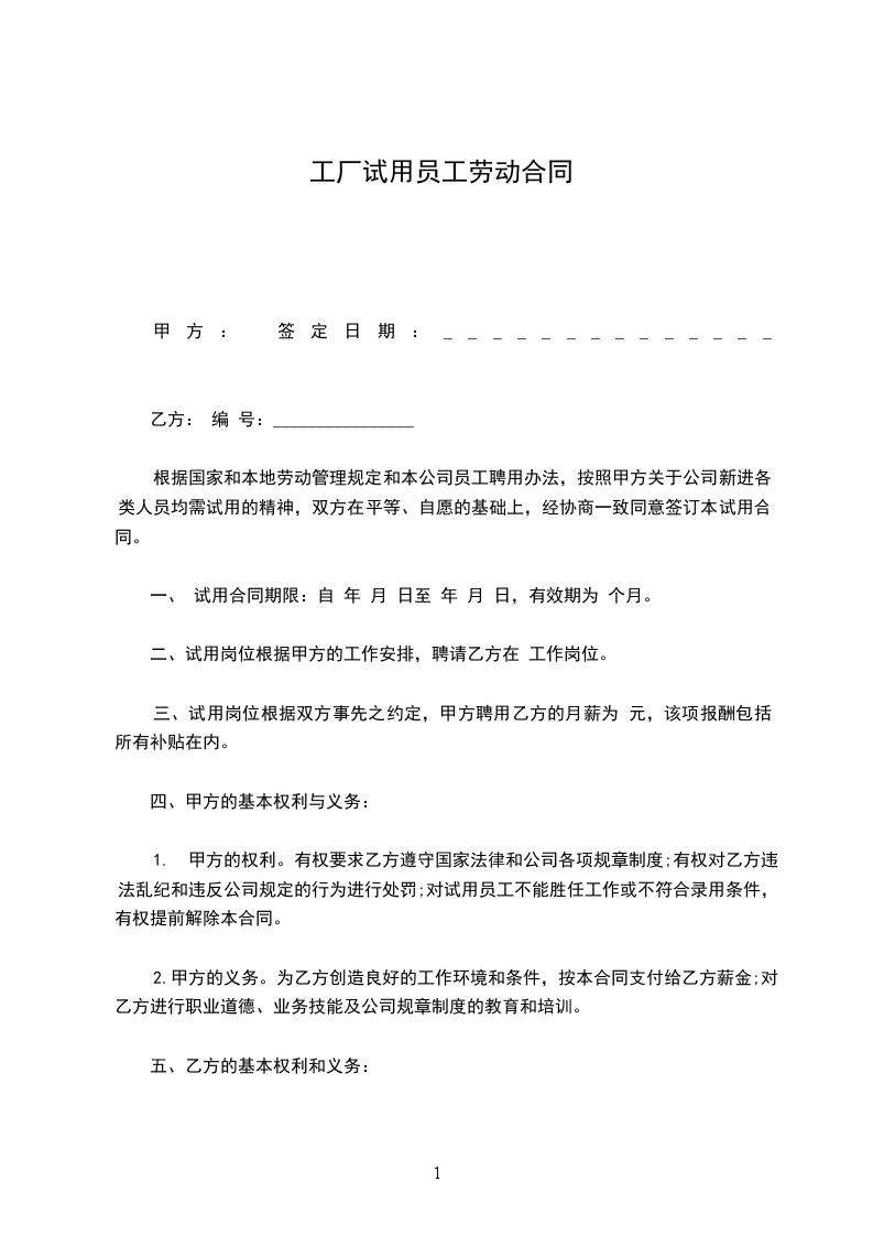 根据国家和本地劳动管理规定和本公司员工聘用办法,按照甲方关于公司新进各类人员均需试用的精神,双方在平等、自愿的基础上,经协商一致同意签订本试用合同。