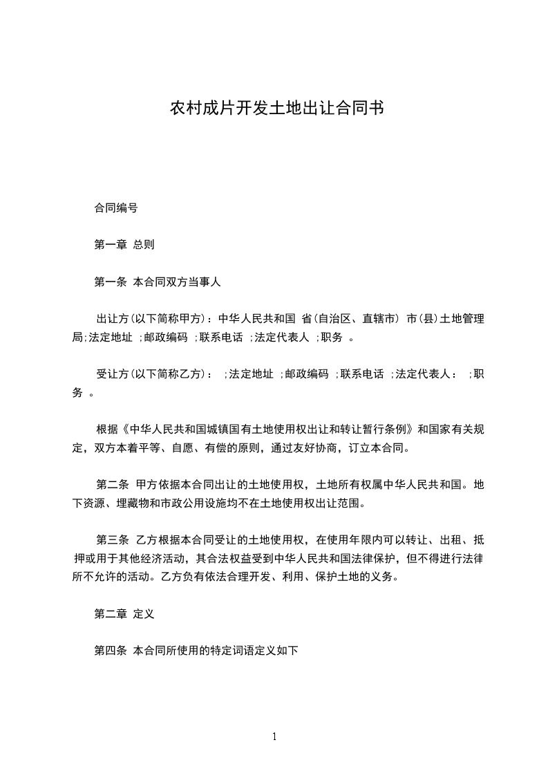 1.“地块”指本合同项下甲方向乙方出让土地使用权的区域,即本合同第五条界定的区域。