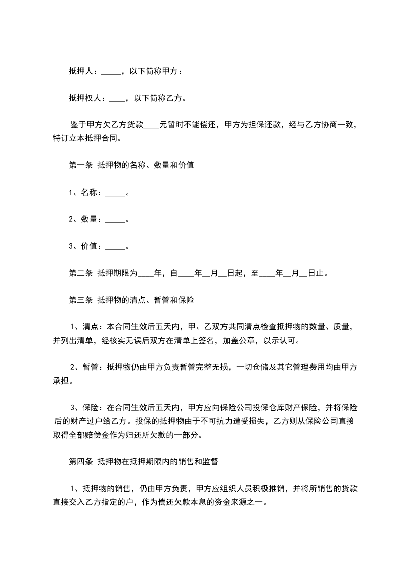 第五条:质押期间质物交由乙方占管。因乙方原因造成质物丢失或损坏,乙方按评估值赔偿。因不可抗拒因素造成质物损坏及殃及部分,乙方不负赔偿。