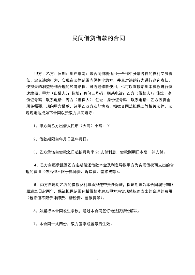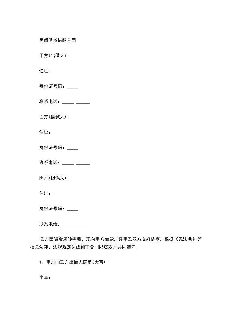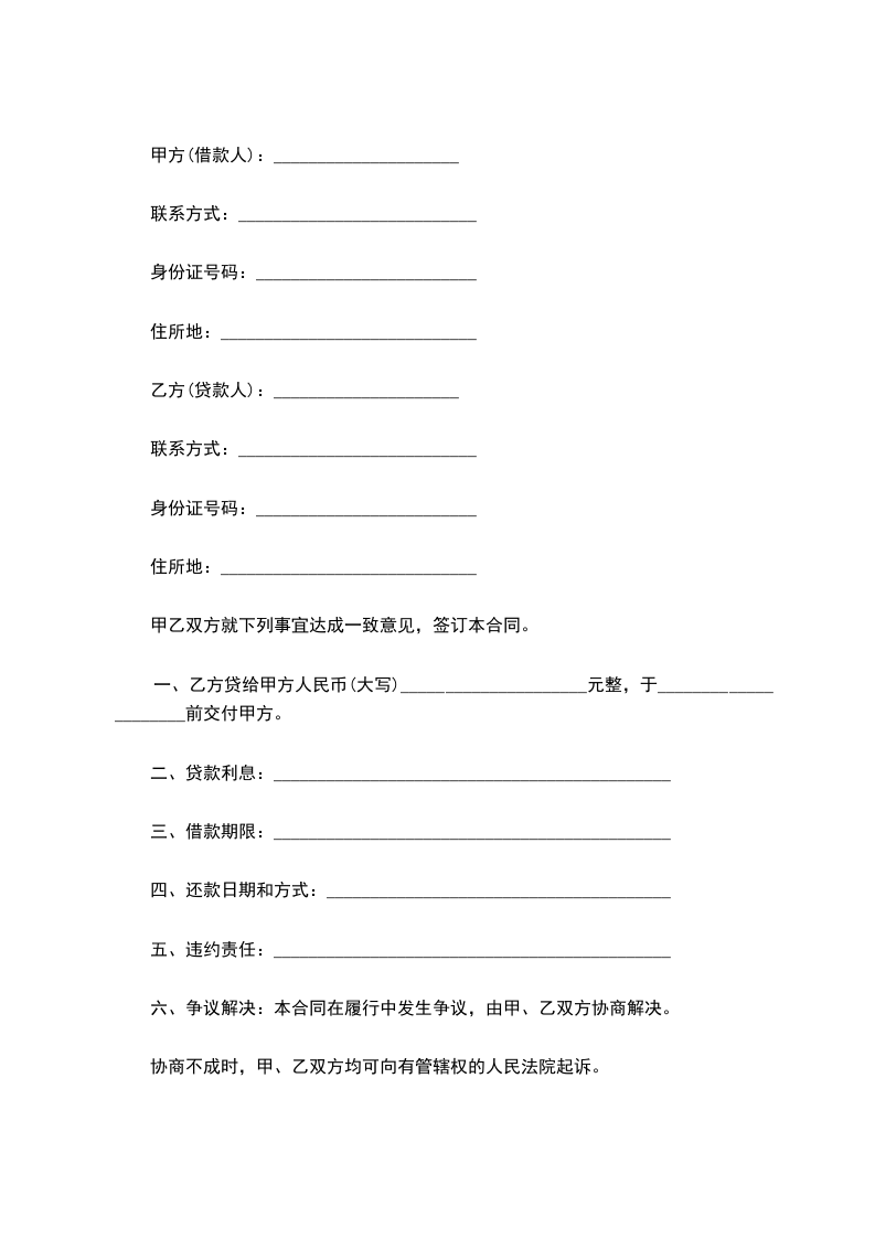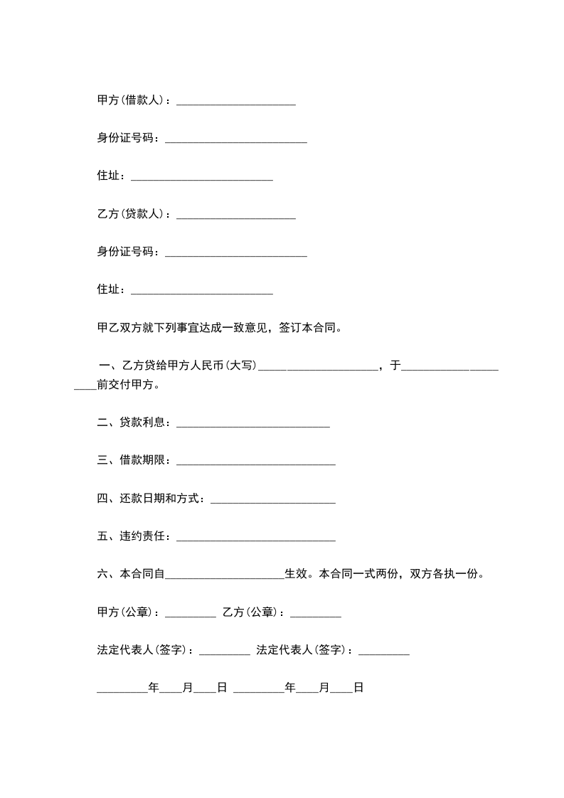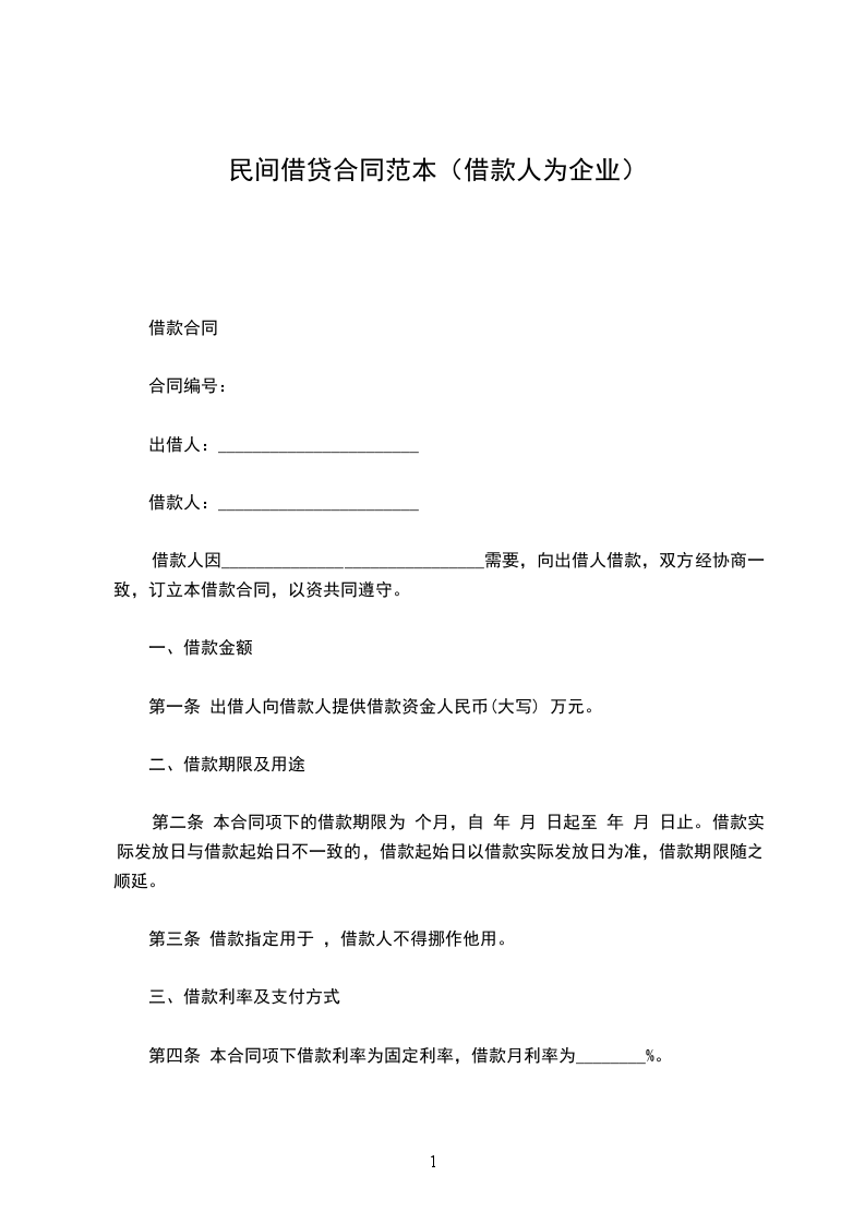 第一条 出借人向借款人提供借款资金人民币(大写) 万元。