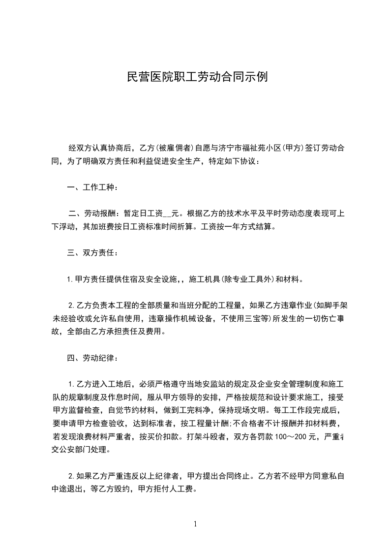 乙方(劳动者)姓名:______________________________________